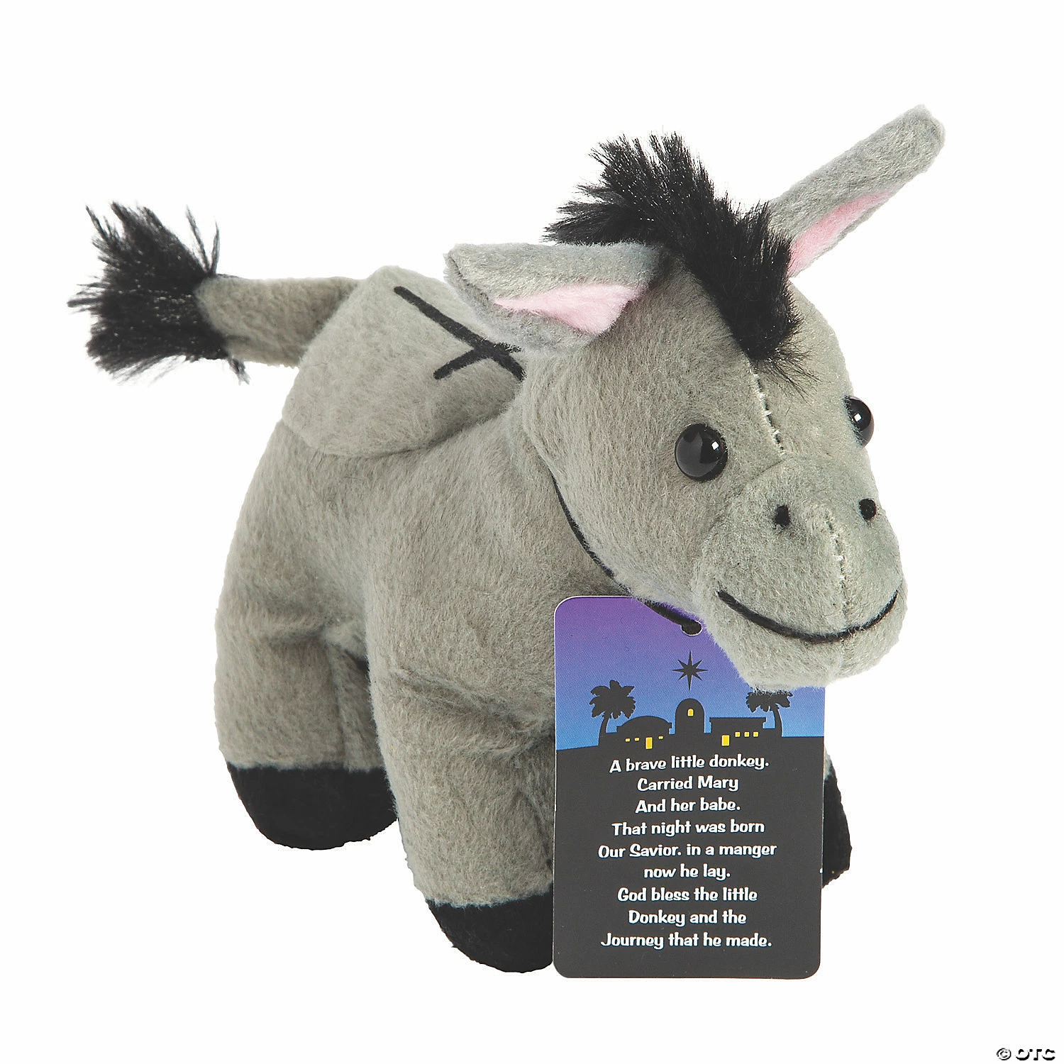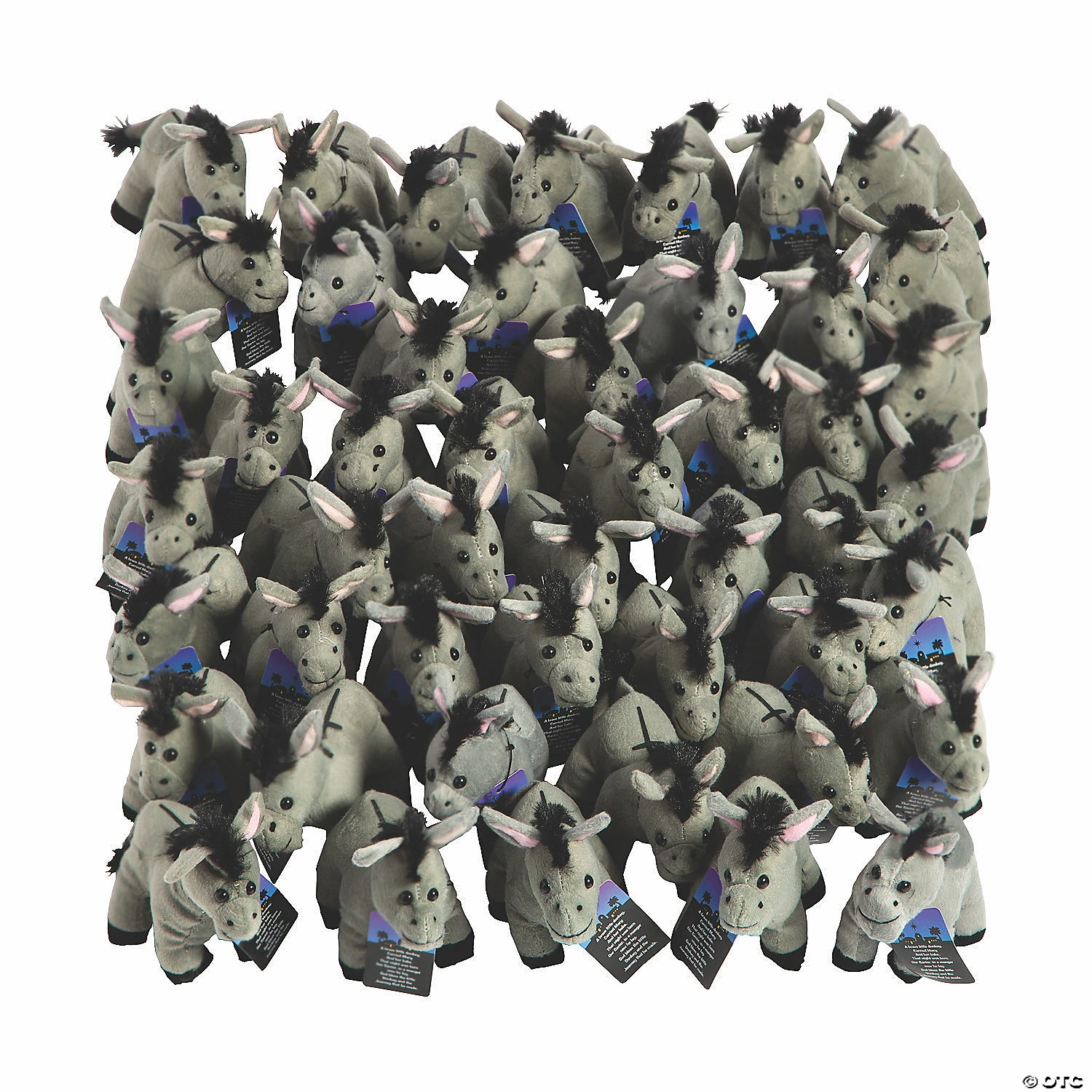 Great for stocking stuffers, party favors at large Christmas parties and so much more! Each adorable and super soft donkey comes with a card that explains the religious significance of the donkey and how it plays into the season. Plush. (4 dozen per unit) Donkey, 6″; cardstock card, 1 1/2″ x 2″. Β© OTC